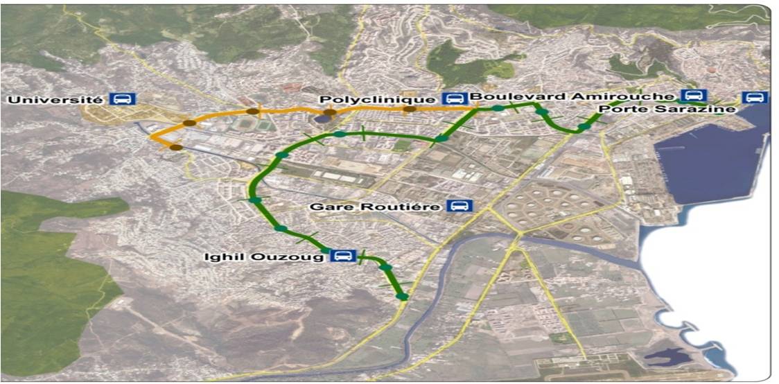 La variante retenue et validée concerne la ligne 1 allant de Ighilouzoug vers la porte Sarazine en passant par la gare routière et le boulevard Amirouche, sur un linéaire de 9,7 Km et 19 stations, dont les caractéristiques sont :