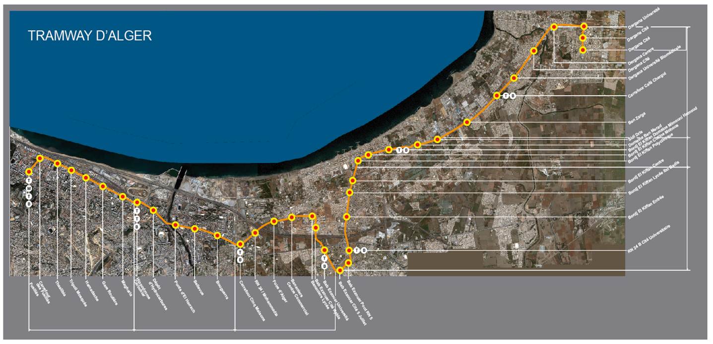 Avec la mise en service de ces deux extensions, le Tramway d’Alger totalise un linéaire de 23,2 Km et 38 stations desservant des quartiers très denses en population et des sites sociaux-économiques sur l’Est d’Alger.
